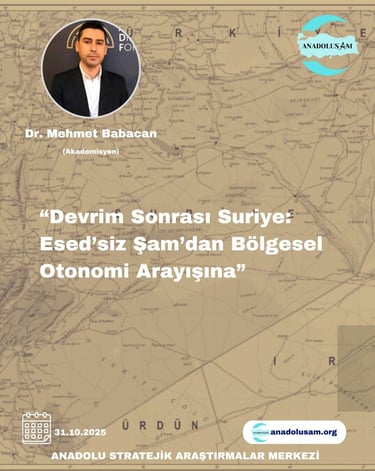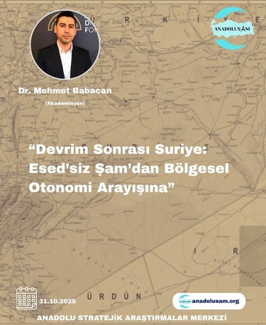 Anadolusam, Türkiye'nin ve bölgenin stratejik derinliğini anlamak, yorumlamak ve geleceği şekillendirmek için çalışan bağımsız bir araştırma merkezidir.